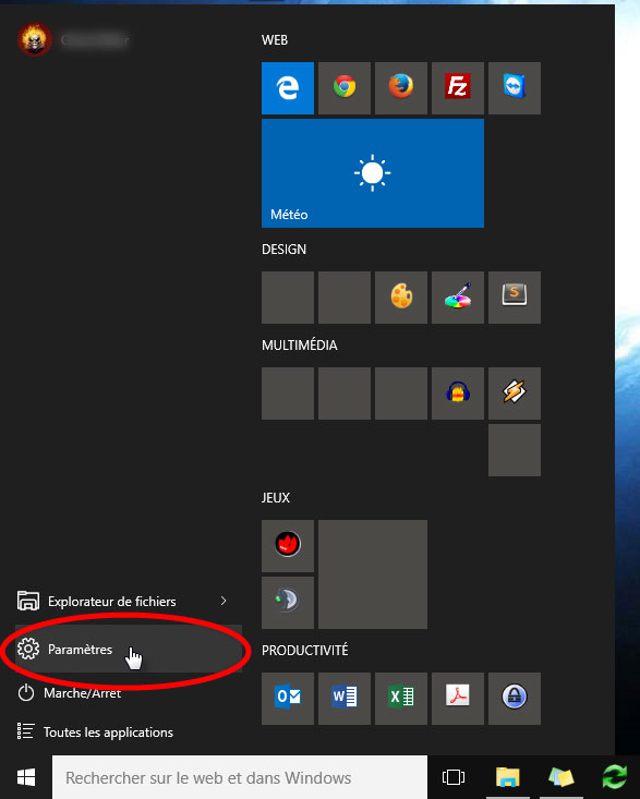Ouvrez le menu démarrer en cliquant sur le bouton Windows