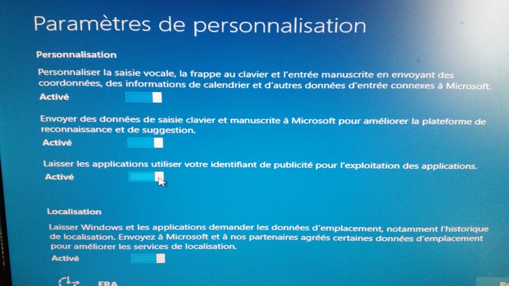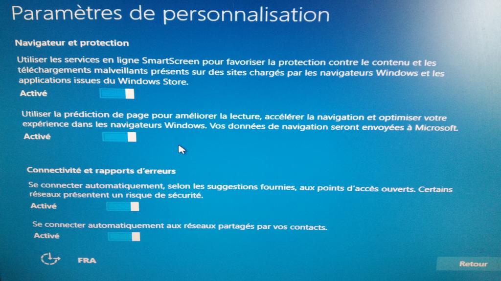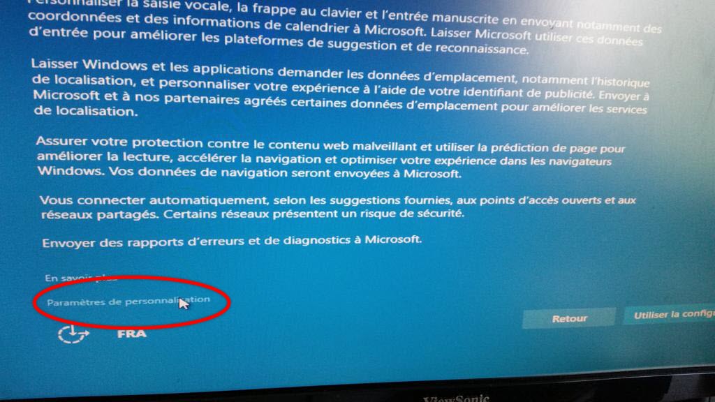 Absolument pas! Dès l’installation de Windows 10, si vous choisissez l’option « Paramètres de personnalisation » au lieu de cliquer sur « Utiliser la configuration par défaut », vous aurez tout le loisir de désactiver ces options de collecte d’informations.